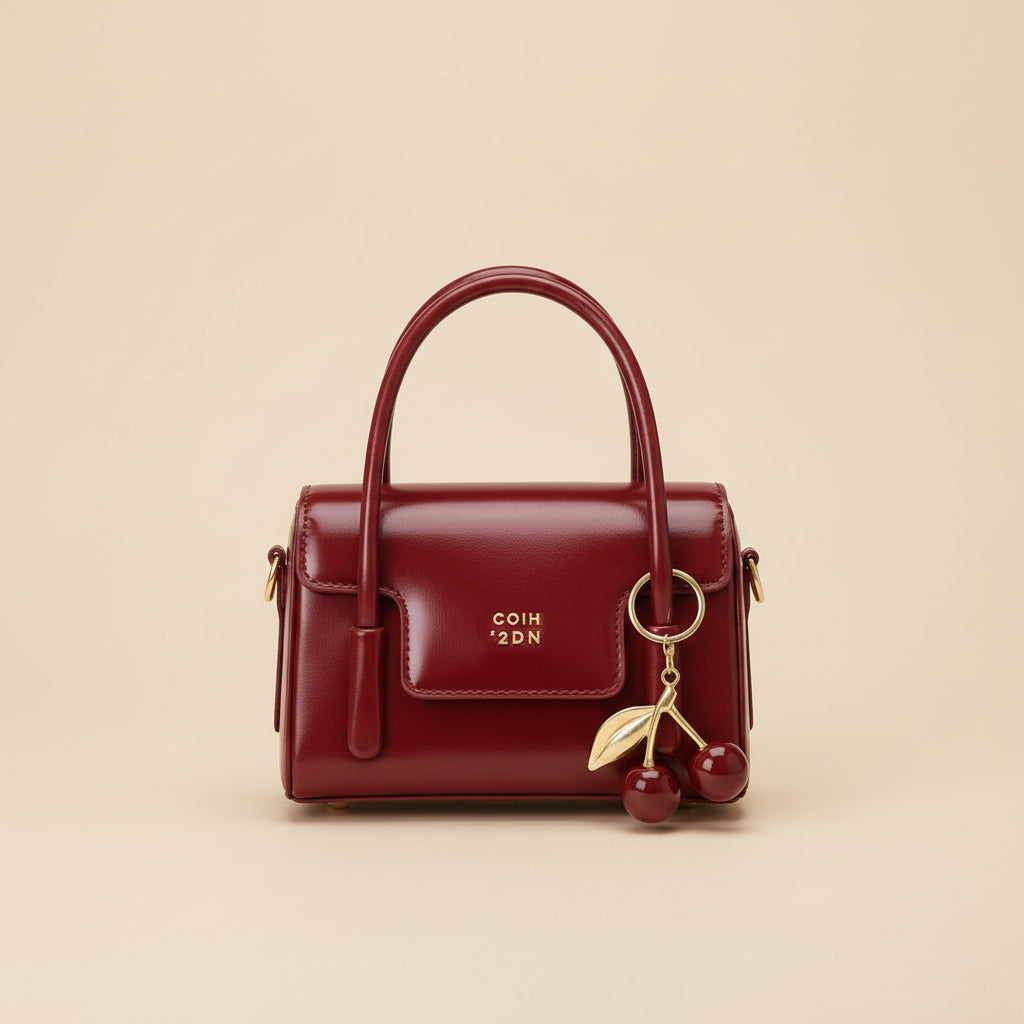 - Design & Style: A highly-structured, "boxy" (horizontal square) silhouette. Features an optional cherry pendant/charm for a playful, "cross-border trend" look.